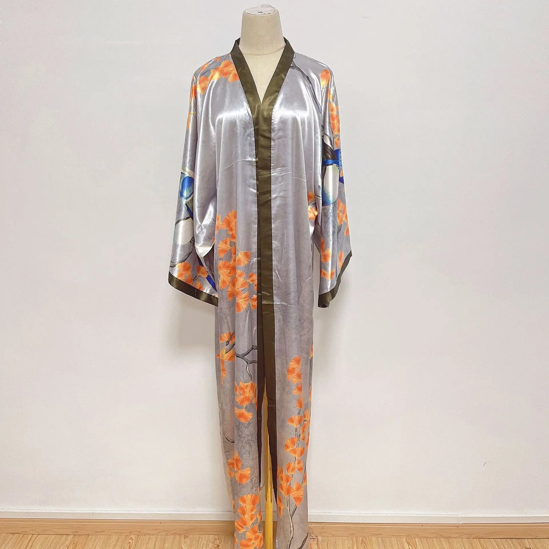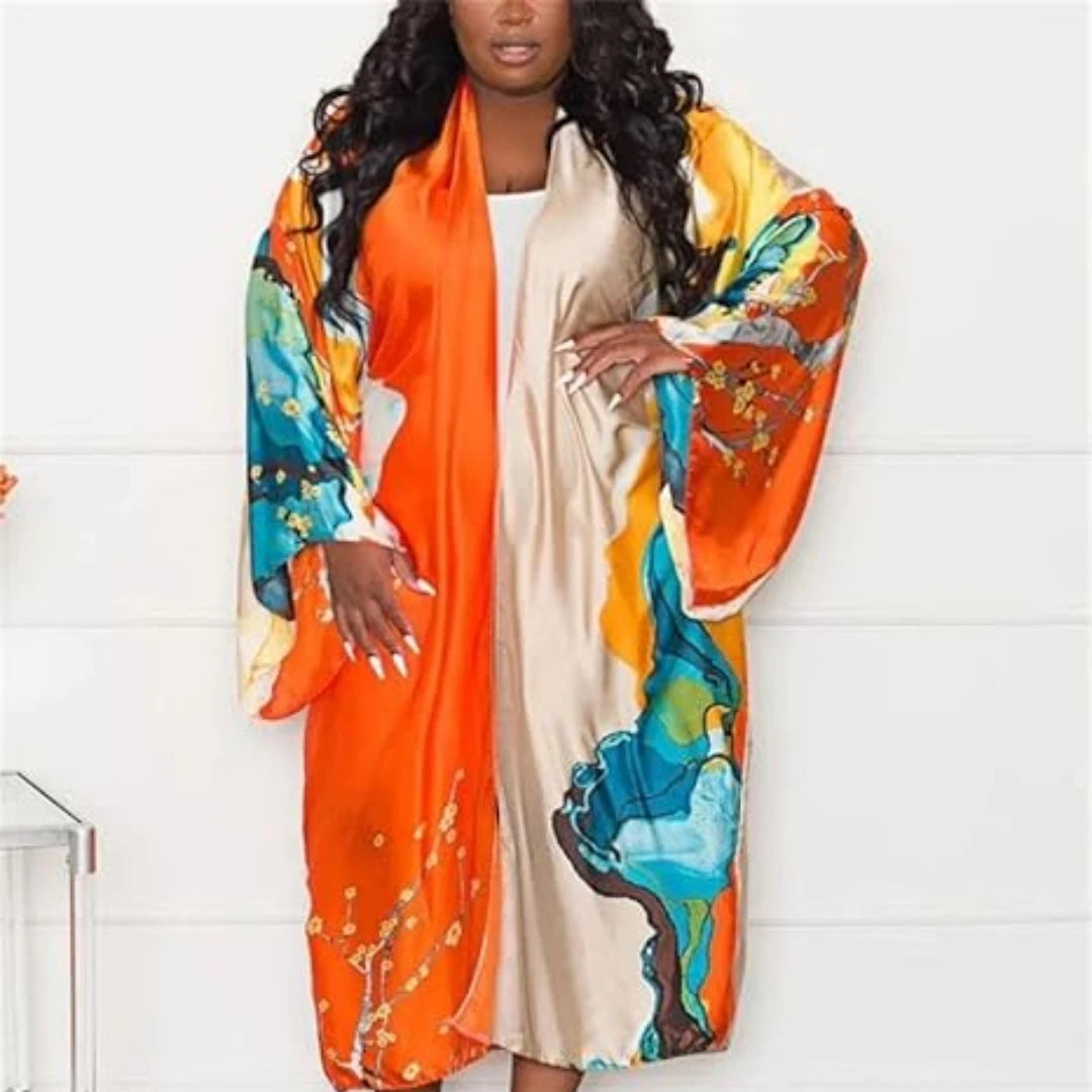 ✨ Plus Size Satin Long Kimono Cardigan – Lightweight Silk-Style Summer Cover-Up (S–5XL)
