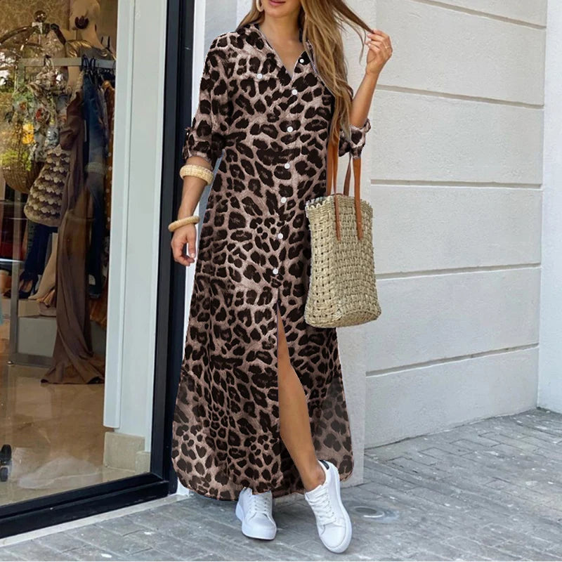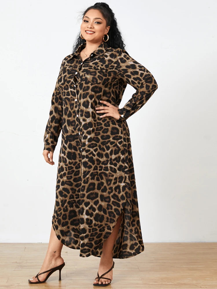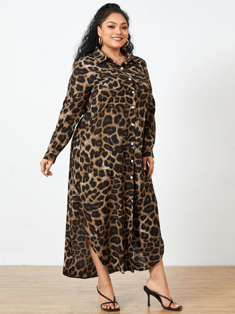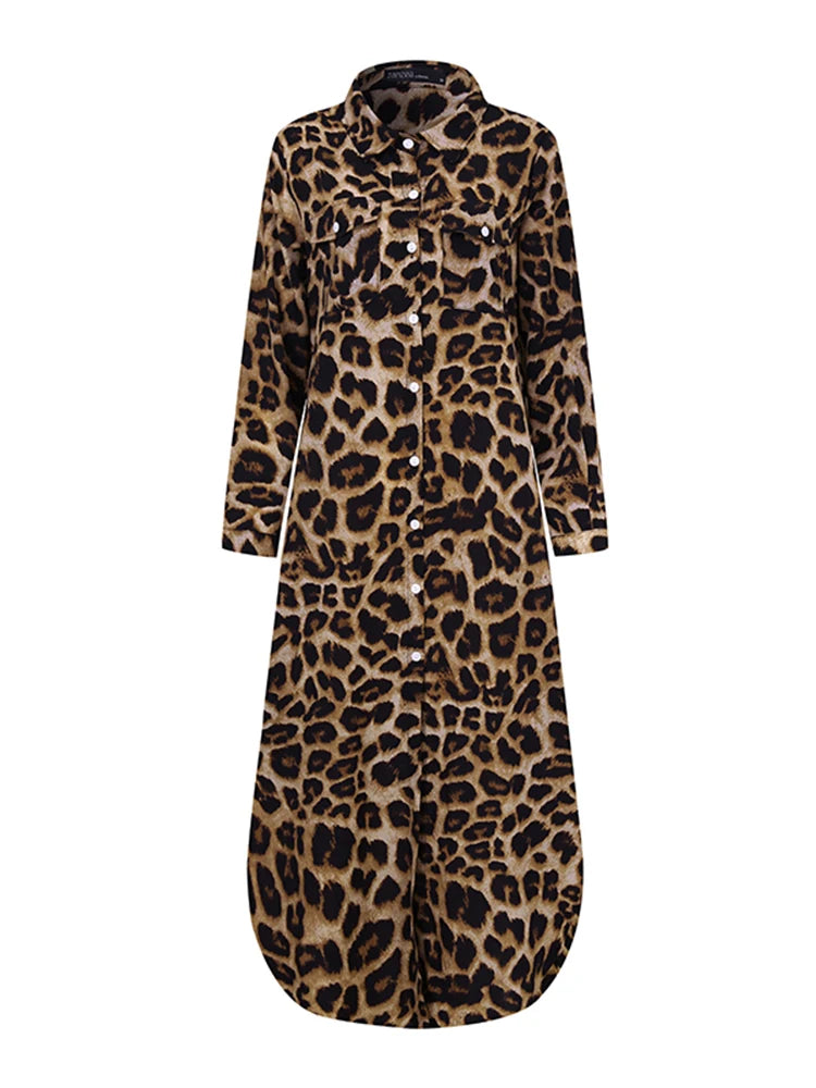 Unleash your confidence this season with our ZANZEA Plus Size Leopard Print Long Dress a bold yet elegant statement piece designed for every curve. This long-sleeve, button-up shirt dress combines effortless style with all-day comfort, making it the perfect choice for work, weekends, and everything in between.